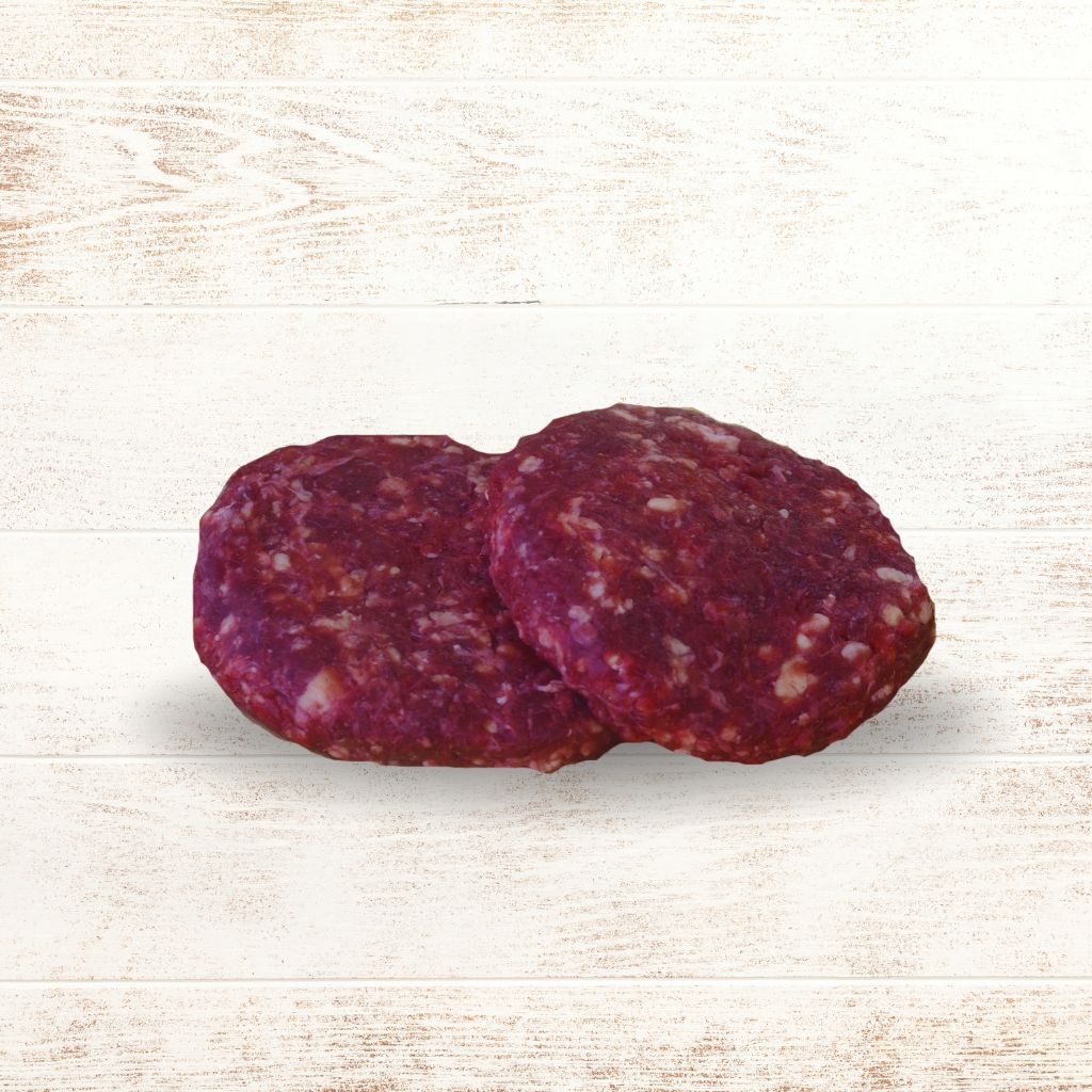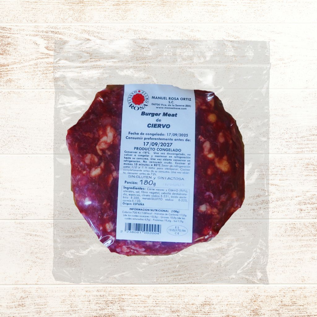 Preparada únicamente con carne magra de ciervo (98,3%) y un toque de sal, esta hamburguesa destaca por su sabor auténtico y natural. Una opción saludable y diferente para quienes buscan disfrutar de la carne de caza en su forma más pura.